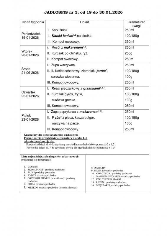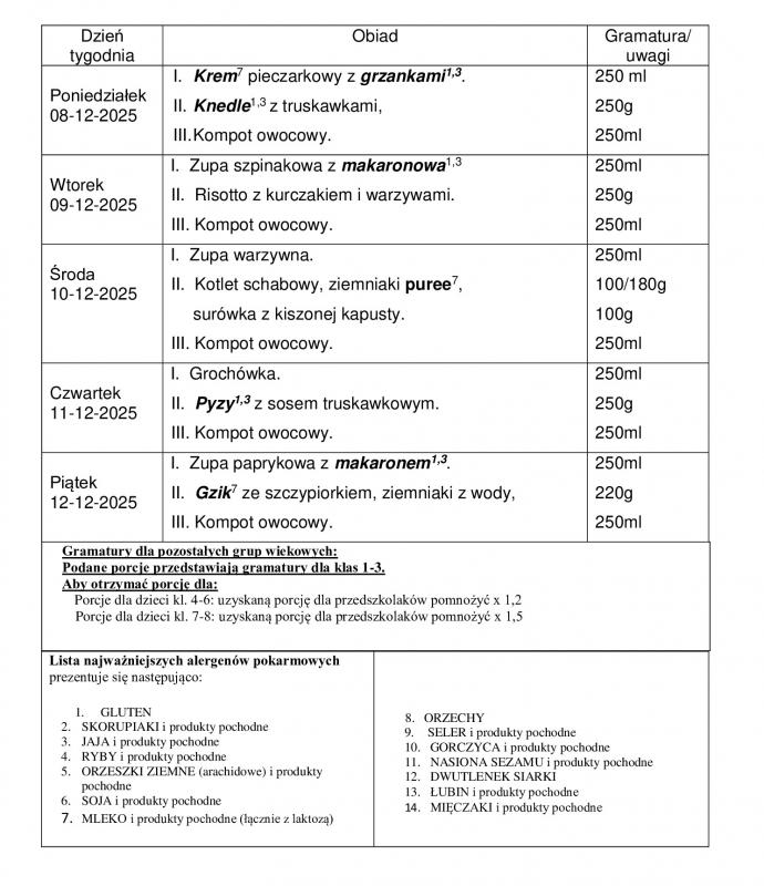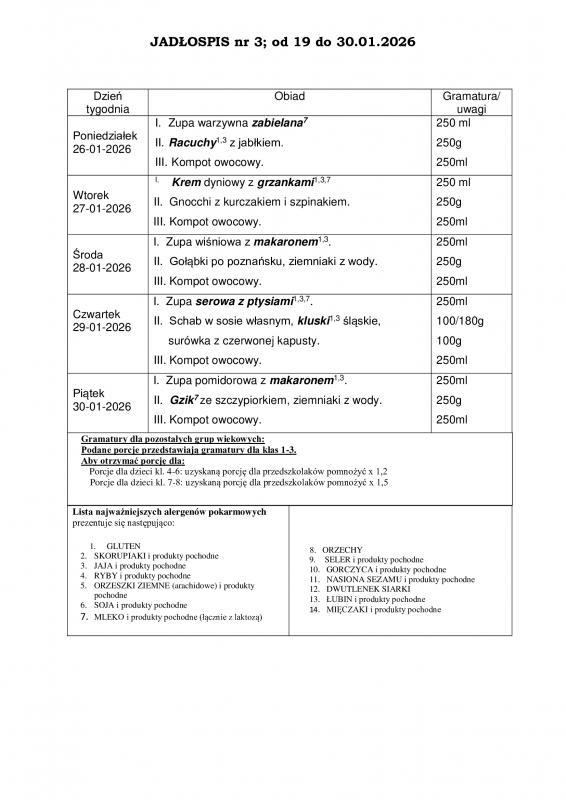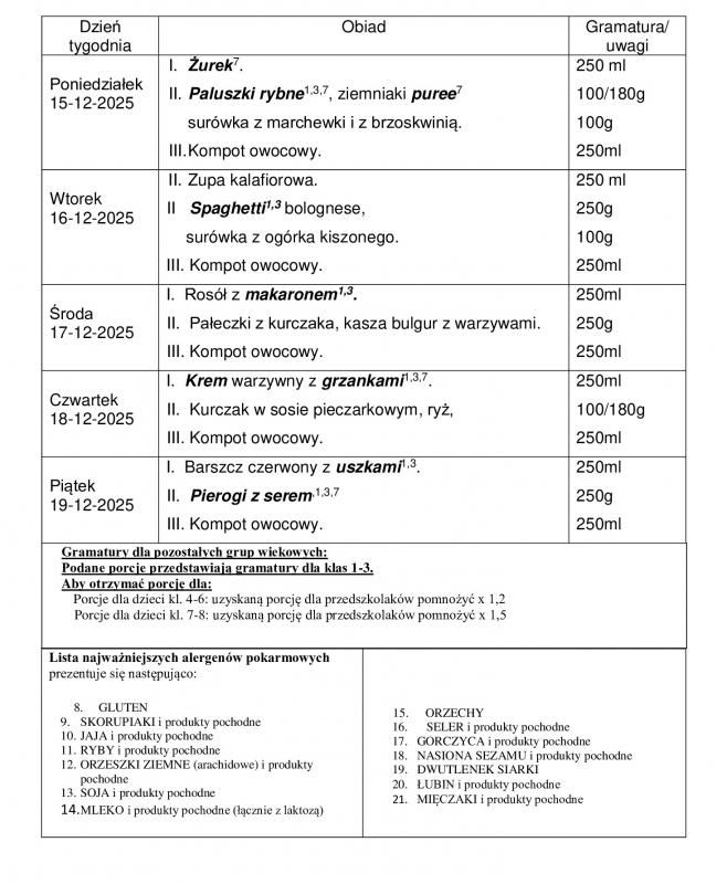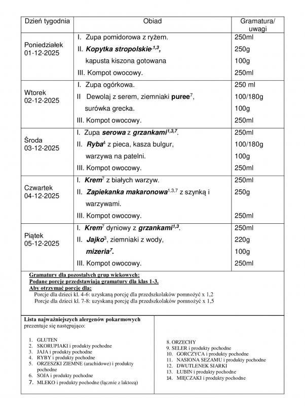 KARTA ZGŁOSZENIA NA OBIADY W SZKOLE