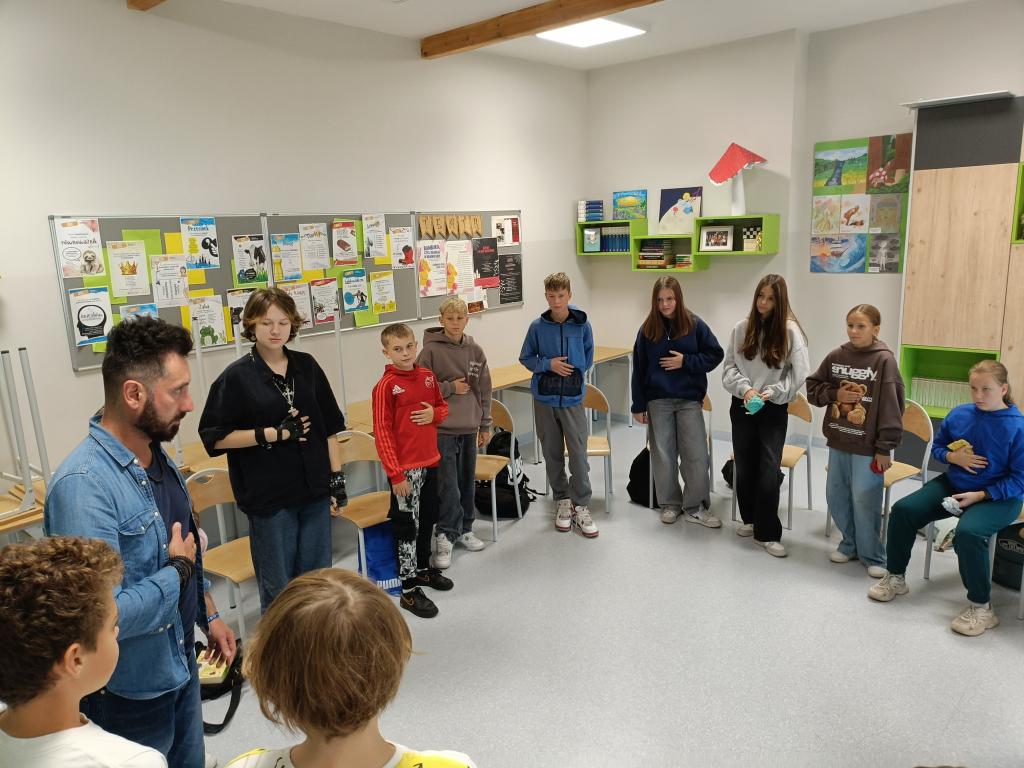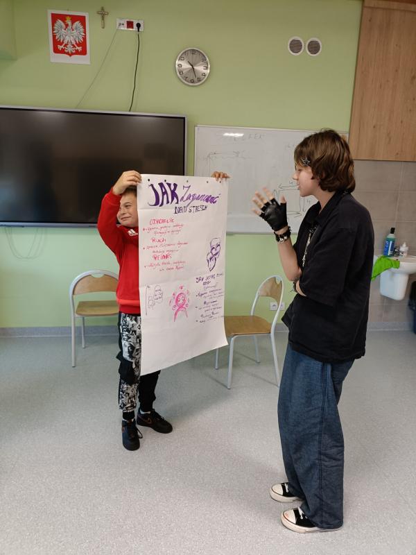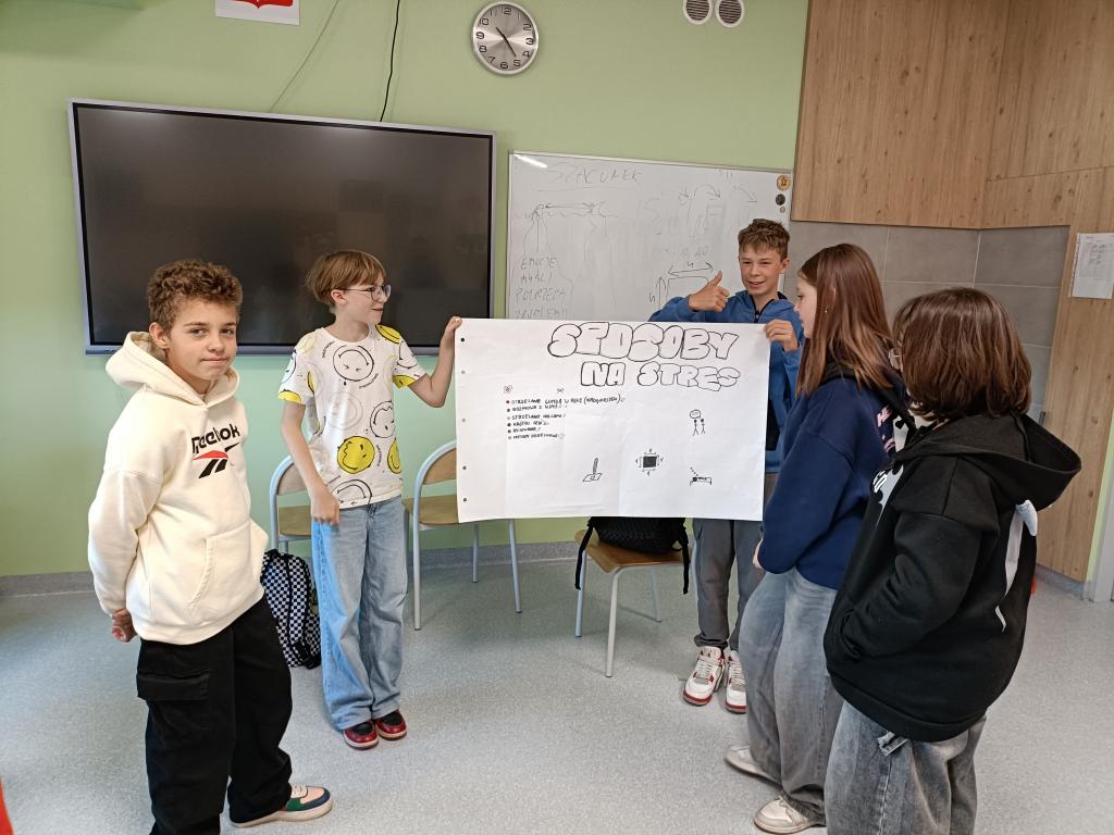 Drugim ważnym elementem warsztatów były techniki redukcji stresu, które uczniowie mogli poznać i wypróbować. Wśród nich znalazły się m.in. ćwiczenia oddechowe, elementy relaksacji, techniki uważności oraz sposoby radzenia sobie z negatywnymi myślami. Dzięki temu uczniowie zyskali narzędzia, które mogą wykorzystać w codziennych sytuacjach szkolnych i domowych, aby lepiej zarządzać emocjami i napięciem.