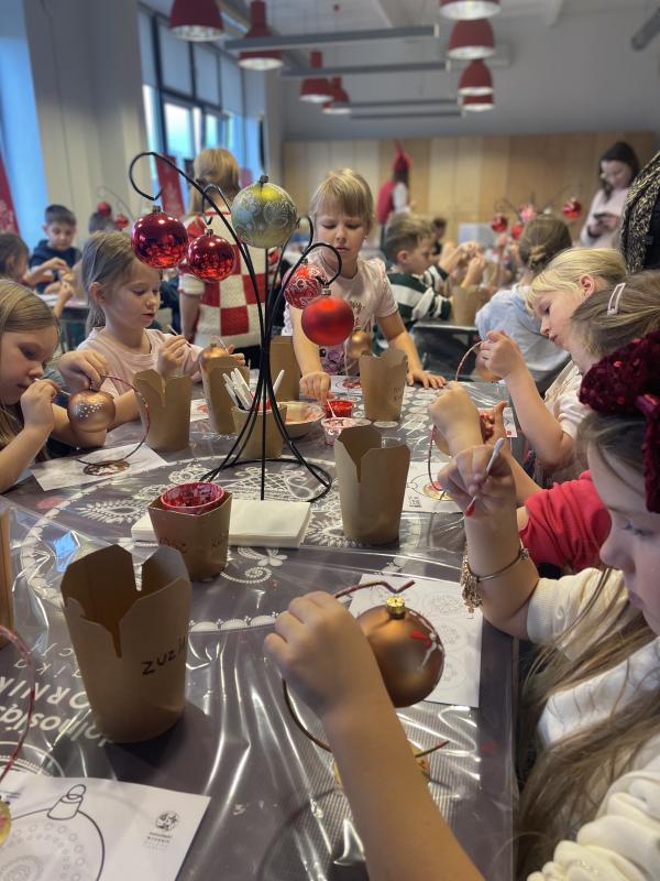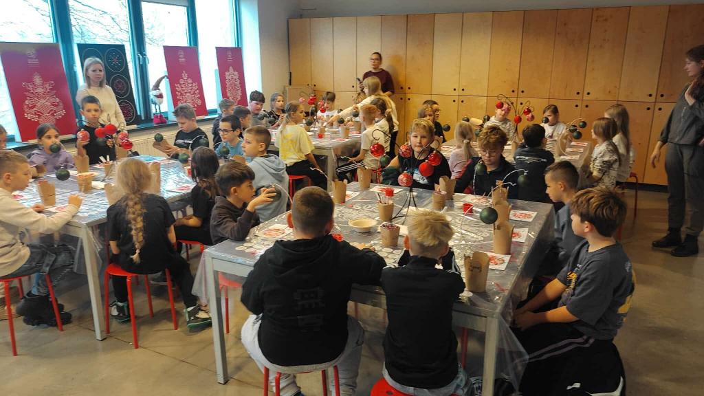 Podczas warsztatów uczniowie mieli okazję poznać tajniki powstawania tradycyjnych bombek oraz historię ich zdobienia. Szczególną atrakcją było spotkanie z dolnośląskim wzorem malowanym metodą kropkową, który dzieci mogły samodzielnie wykorzystać, tworząc własne świąteczne ozdoby.