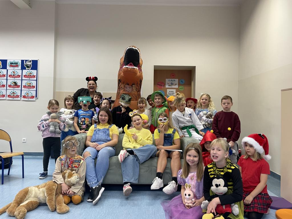 W jeden z listopadowych piątków w naszej szkole panował magiczny nastrój. Świętowano Dzień Postaci z Bajek, podczas którego Samorząd Uczniowski zadbał o to, by korytarze zamieniły się w prawdziwą bajkową krainę. Pojawiły się księżniczki, superbohaterowie, czarodzieje i bohaterowie, których trudno było rozpoznać, bo tak świetnie wcielili się w swoje role. Nie zabrakło wspólnego czytania bajek i baśni, zagadek oraz quizów, które udowodniły, że uczniowie znają bajkowe historie lepiej niż niejeden ekspert od literatury.
